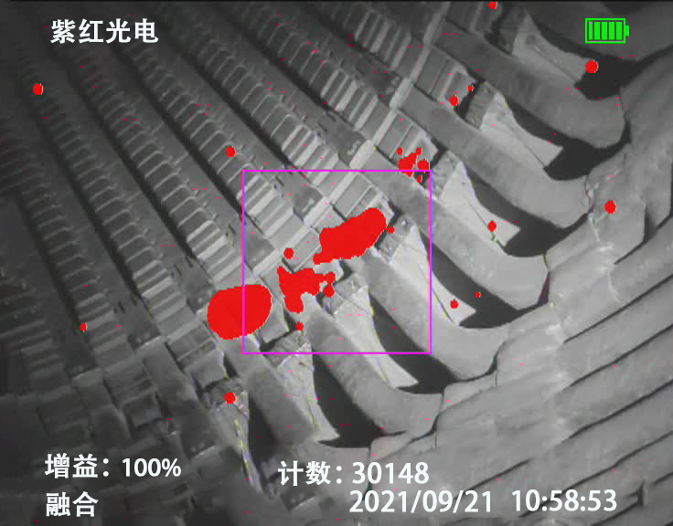 紫外成像仪是通过检测高压带电体表面空气游离放电产生的紫外光子,来表征电晕放电缺陷情况。电晕放电就像是人体组织中的肿瘤细胞一样,越早被发现就越有利于电气设备的安全、高效运行。