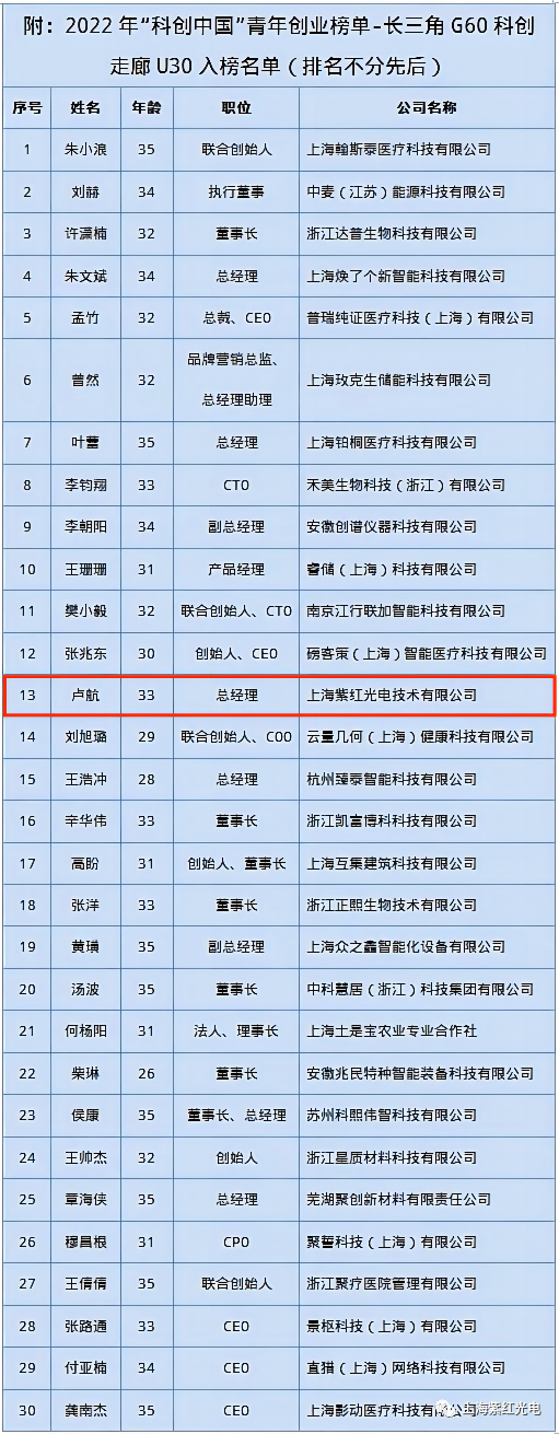 紫红光电总经理荣登“科创中国”青年创业榜单-长三角G60科创走廊U30