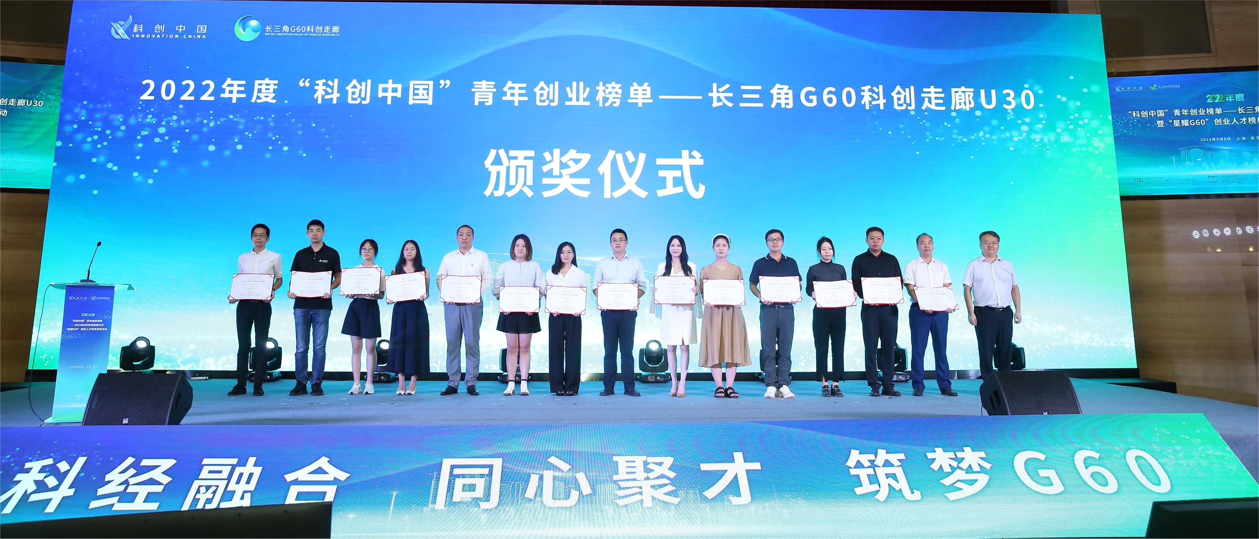 9月8日上午,2022“科创中国”青年创业榜单——长三角G60科创走廊U30,长三角G60科创走廊创业榜单——星耀G60(以下简称“U30”和“星耀G60”)发布并举行了颁奖仪式。共有60位优秀创新创业人才脱颖而出成功入选。