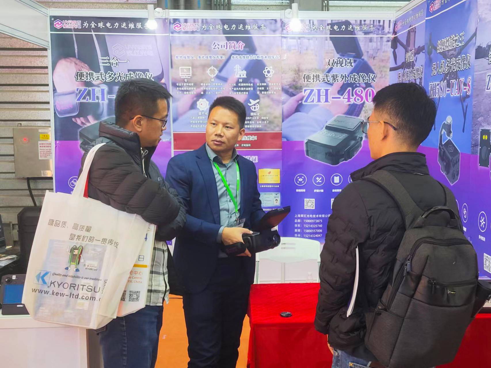 市场营销部的同事热情地向客户们介绍紫红光电产品的优势和特点,并就紫外成像的检测原理、应用场景、解决问题等方面进行了详细介绍。参展用户们纷纷上手操作,亲自体验仪器如何使用对电力设备运维缺陷的检测及诊断。