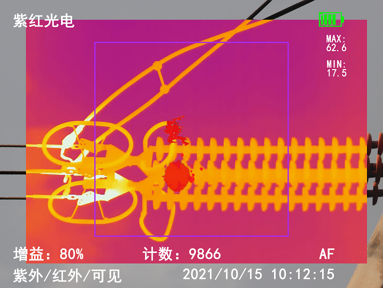危急缺陷:指设备存在电晕放电,程度和性质严重。对于导电体表面电晕放电,单位时间内光子数重复出现的*大值≥8000 个/sec和绝缘体表面出现的电晕放电,应立即安排处理